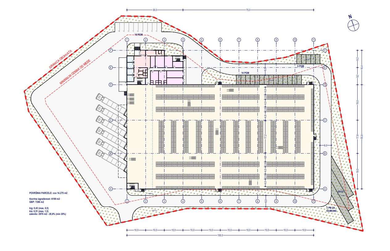 For sale: commercial land of 14,295 m² with a valid building permit for a modern logistics warehouse measuring 6,207.41 m² and office space of 430.57 m².