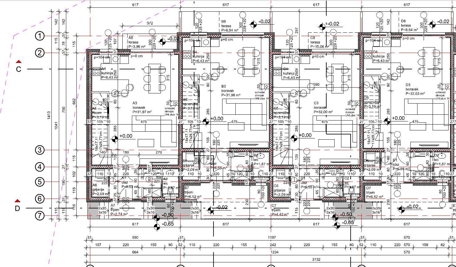 Prizemlje donosi prostrani dnevni boravak povezan s kuhinjom i blagovaonicom u otvorenom konceptu; savršeno mjesto za druženje i obiteljske trenutke. Velike staklene stijene unose obilje prirodnog svjetla i otvaraju izlaz na terasu i vrt. Tu su i gostinjski toalet te praktična tehnička prostorija.